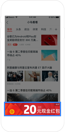 始终悬浮在页面底部的广告,利用视觉收束聚焦,吸引用户点击